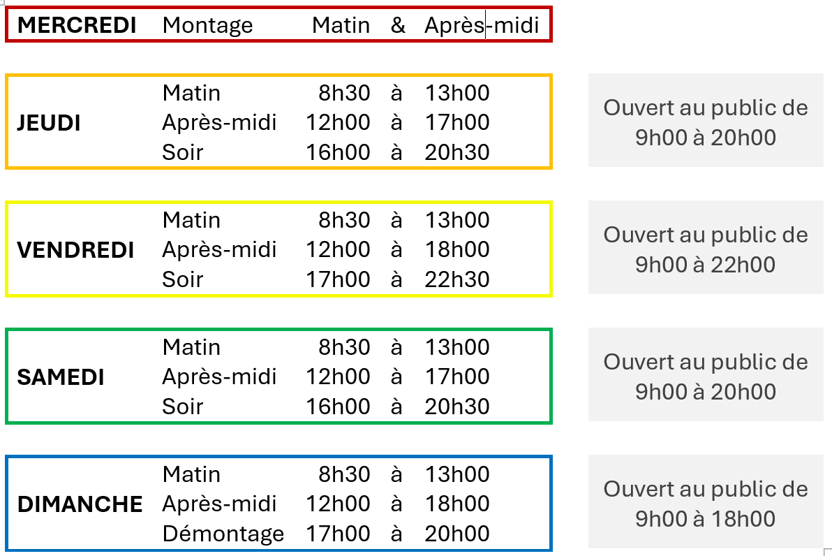 LES HORAIRES DU SALON :